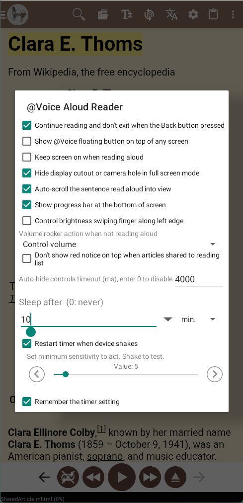 @Voice includes a configurable sleep timer, long-form resume behavior, bookmarks, queue controls, and hands-free playback features that make it a practical bedtime reader.